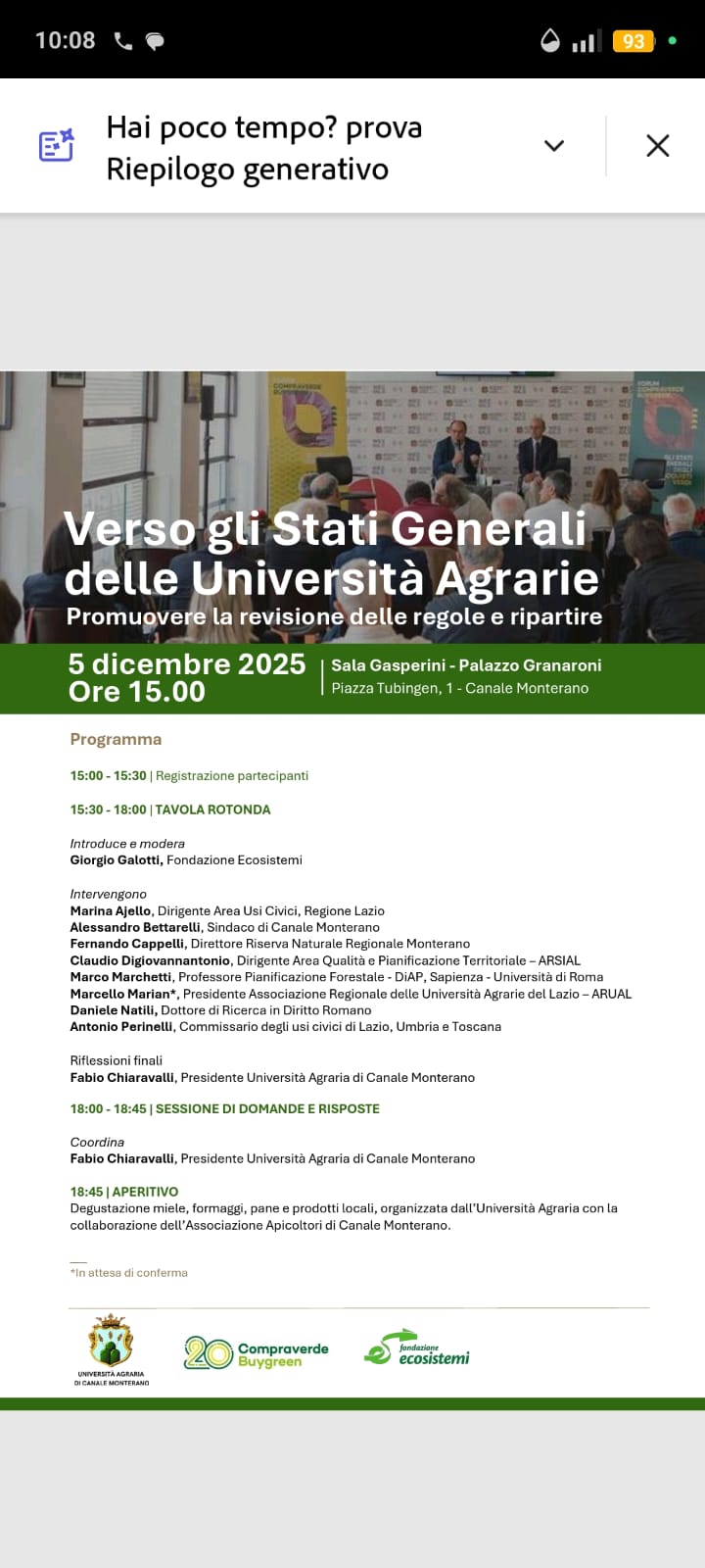 CANALE MONTERANO (ROMA) 5 DICEMBRE 2025 ORE 15- VERSO GLI STATI GENERALI DELLE UNIVERSITA’ AGRARIE -PROMUOVERE LA REVISIONE DELLE U.A. E RIPARTIRE